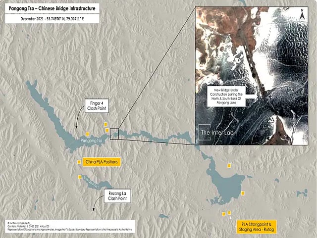 पुढारी ऑनलाईन: नवीन वर्षाच्या निमित्ताने चीनने भारतीय लष्करासोबत शुभेच्छा आणि मिठाईची देवाणघेवाण केली असेल. पण ड्रॅगन त्याच्या कृत्याला आवर घालत नाही. ताजी बातमी पूर्व लडाखमधील आहे, जिथे चीनचे पीएलए सैन्य पॅंगॉन्ग-त्सो तलावावर पूल बांधत आहे. ओपन सोर्स सॅटेलाइट इमेजमधून या पुलाचे बांधकाम उघड झाले आहे. 'इंटेल लॅब' या ओपन सोर्स इंटेलिजन्सनुसार, चीन पॅंगॉन्ग त्सो सरोवरावर एक पूल बांधत आहे. जेणेकरुन त्याचे सैन्य सरोवराच्या उत्तर आणि दक्षिण भागात सहज जाऊ शकतील. इंटेल लॅबने या पुलाची उपग्रह प्रतिमाही प्रसिद्ध केली आहे.