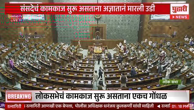 पीठासीन अधिकारी राजेंद्र अग्रवाल यांनी नंतर प्रसारमाध्यमांना सांगितले की, एका तरुणाने गॅलरीतून उडी मारली तेव्हा तो खाली पडला असावा. त्यानंतर आणखी एका तरुणाने प्रेक्षक गॅलरीतून उडी मारली. त्यापैकी एकाच्या हातात काहीतरी होते. ज्यातून पिवळा धूर निघत होता, तर दुसर्याच्या हातात काहीतरी होते, ज्याचा आवाज येत होता. यावेळी कोणतेही नुकसान झालेले नाही. तरुणांना पोलिसांनी ताब्यात घेतले आहे . मात्र, प्रेक्षक गॅलरीतून उडी मारणे ही गंभीर बाब आहे. संसदेच्या सुरक्षेतील ही मोठी चूक आहे. चौकशी करून कारवाई केली जाणार आहे.