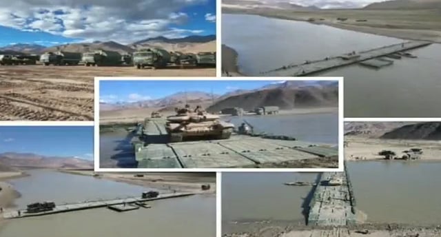 Indian Army "आव्हाने पूर्ण करणे – भूप्रदेश किंवा उंची असुरक्षित नाही'. पूर्व लडाखमधील सप्तशक्ती अभियंते गतिशीलता कार्ये आणि प्रशिक्षण घेत आहेत. बलाढ्य #सिंधू नदीला ब्रिजिंग करून, लढाऊ आणि लॉजिस्टिक दोन्ही मार्गांची हालचाल सक्षम करते," असे ट्विट भारतीय लष्कराच्या दक्षिण पश्चिम कमांडने केले आहे.