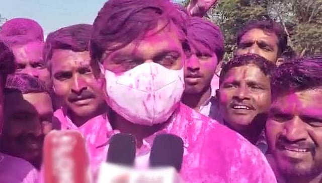 कोरेगावच्या विजयी उमेदवारांनी आमदार महेश शिंदे यांना खांद्यावर उचलून घेत गुलालाची उधळण करत मिरवणूक काढली.
