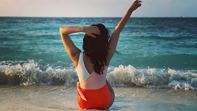 एका फोटोत ती समुद्रकिनारी पाठमोरी बसलेली दिसते. या फोटोत ती बिकिनीमध्ये दिसतेय. तिने हा फोटो शेअर कॅप्शन लिहिलीय- Let start off with some Maldives pictures ♥️