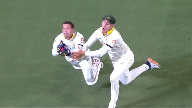 हा थरार इंग्लंडच्या डावातील ६७ व्या षटकात घडला. ॲटकिन्सनने चेंडू फ्लिक करण्याचा प्रयत्न केला, पण चेंडू बॅटच्या वरच्या कडेला लागून यष्टिरक्षकाच्या मागे हवेत उंच उडाला. चेंडू पकडण्यासाठी केरी आणि नजीक उभा असलेला क्षेत्ररक्षक मार्नस लाबुशेन दोघेही मागे धावले. क्षणाचाही विलंब न लावता दोघांनीही चेंडूपर्यंत पोहोचण्यासाठी झेप घेतली.