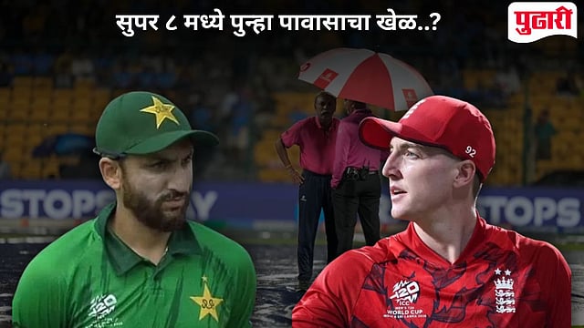 T20 World Cup 2026 Super 8 : न्यूझीलंडविरूद्धचा पहिला सामना वॉश आऊट झाल्यानंतर आता पाकिस्तान इंग्लंडविरूद्धच्या सामन्यासाठी सज्ज झाला आहे. मात्र सुपर ८ मध्ये या सामन्याचं भवितव्य हे वरूणदेवाच्या कृपेवर अवलंबून आहे. इंग्लंडने आधीच श्रीलंकेचा पराभव करत २ गुण मिळवले आहेत.