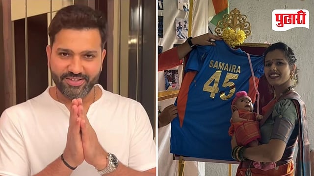 तर त्याचं झालं असं की, गीतेश ठाकूर आणि ममता म्हात्रे ठाकूर हे जोडपं रोहित शर्माचे मोठे फॅन. नुकतेच त्यांना कन्यारत्न प्राप्त झाले. आपल्या लाडक्या खेळाडूवरील प्रेमापोटी त्यांनी आपल्या मुलीचे नावही रोहितच्या मुलीच्या नावावरून 'समायरा' असे ठेवले. विशेष म्हणजे, या चिमुकलीचं बारसं देखील अगदी रोहित शर्माच्या स्टाईलने साजरं करण्यात आलं. रोहित शर्माने स्लो मोशनमध्ये वर्ल्ड कपची ट्रॉफी स्वीकारली होती. त्याचीच नक्कल करत गीतेश ठाकूर यांनी मुलीच्या नावाचं बारसं केलं. रोहित शर्माच्या 45 नंबरची जर्सी त्यांनी उघड केली, तेव्हा त्यावर समायरा लिहिलेलं होतं.