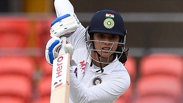 स्मृतीने कसोटीच्या पहिल्याच दिवशी ८० धावांपर्यंत मजल मारली होती. मात्र पावसाने स्मृतीच्या पहिल्या वहिल्या शतकाची प्रतिक्षा वाढवली. पहिल्या दिवसाचा बराचसा खेळ वाया गेल्यामुळे स्मृतीला शतकासाठी दुसऱ्या दिवसाची वाट पहावी लागली. अखेर आज कसोटीच्या दुसऱ्या दिवशी तिने आपले शतक पूर्ण केले.