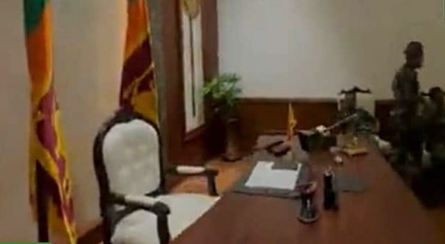 राष्ट्रपती गोटाबाया राजपक्षे यांनी मालदीवला पलायन केल्यानंतर श्रीलंकेत आणीबाणी जाहीर झाली आहे. संतप्त आंदोलकांनी राष्ट्रपती आणि पंतप्रधानांच्या कार्यालयावर हल्लाबोल केल्याने आंदोलक आणि लष्कराचे जवान आमने-सामने आहेत. आंदोलकांनी राष्ट्रपती निवासात धुगगूस घातल्याचे व्हिडीओही व्हायरल झाले आहे. आंदोलक पंतप्रधानांच्या 'खुर्ची'वर कब्जा करु नये, यासाठी सुरक्षा जवान तैनात करण्यात आले आहेत.