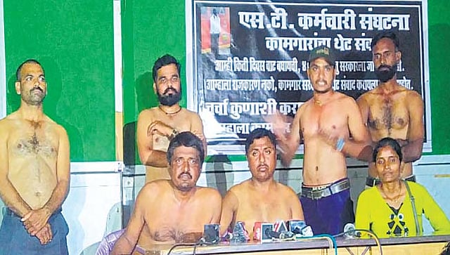एसटी कर्मचार्यांच्या (ST strike) प्रश्नावर राज्यसरकारने राजकीय नेत्यांशी नव्हे तर थेट आमच्याशी चर्चा करावी. आम्हावा वेळ आणि ठिकाण सांगा. मात्र ही चर्चा फक़्त विलिनीकरणाच्या मागणीवरच होईल. आम्ही विलिनीकरणावर ठाम आहोत, अशी भूमिका आझाद मैदानात गेल्या 13 दिवसांपासून ठिय्या आंदोलन करणार्या एसटी कामगारांनी प्रथमच जाहीर केली. आजवर या कामगारांच्यावतीने भाजप आमदार गोपीचंद पडळकर आणि सदाभाऊ खोत बोलत होते. सोमवारी मात्र एसटी कामगारांनी स्वतंत्र पत्रकार परिषद घेत सरकारसमोर विलीकरणाच्या मुद्द्यावर चर्चेचा प्रस्ताव ठेवला.