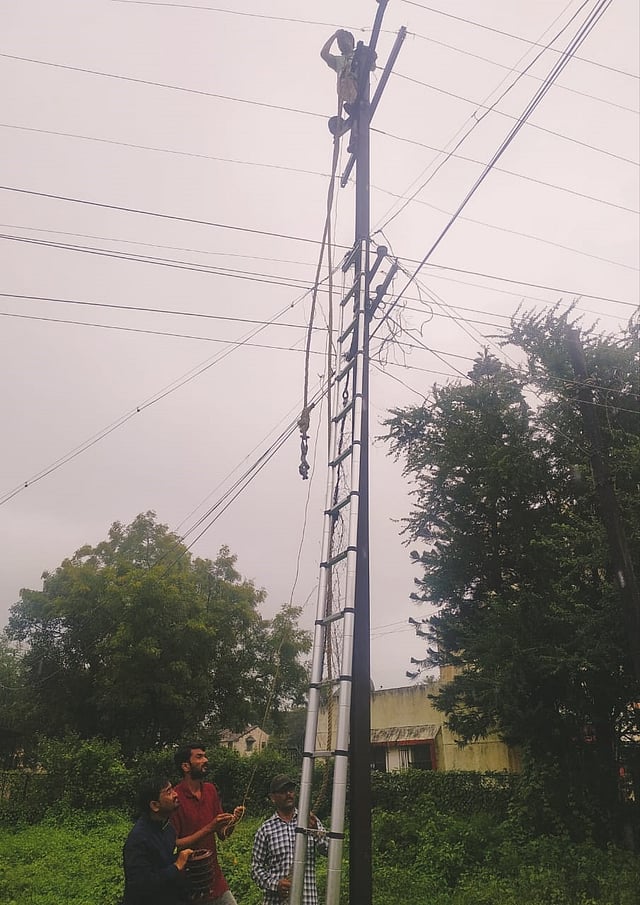 तळेगाव: स्टेशन परिसरात रात्रभर संततधार पाऊस होता. मंगळवारी पहाटे ४.३० च्या सुमारास तळेगाव स्टेशन भागातील वीज पुरवठा लाईन फॉल्ट झाल्यामुळे खंडीत झाला होता. यावेळी इंद्रायणी नगर येथे उच्च दाब वाहीनीची तार तुटली होती. तसेच पीन इन्शूलेटरही पंक्चर झाले होते. महाविरण कामगारांनी फॉल्टी भाग तातडीने ओपन करुन बाकीचा वीज पुरवठा सुरु करुन घेतला. भर पावसात तुटलेली तार आणि नवीन पीन इन्शूलेटर जोडून वीजपुरवठा सकाळी नऊच्या दरम्यान नेहमीप्रमामाणे सुरळीत केला. यावेळी संदीप सरवदे, नरेंद्र भुईंगळ, सतीश गांजरे, राहुल जाधव, लहू गावडे यांनी काम केले.
