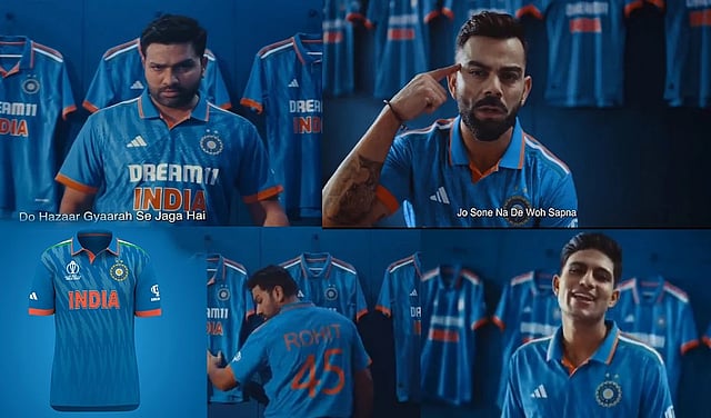 अदिदासने आपल्या अधिकृत सोशल अकाउंटवरून टीम इंडियाची जर्सी लॉन्च केली आहे. अदिदासने एक व्हिडिओ शेअर केला आहे ज्यामध्ये भारतातील प्रसिद्ध गायक आणि रॅपर रफ्तार याने '3 का ड्रीम' हे गाणे गायले आहे. या गाण्यावरच भारतीय संघाचा कर्णधार रोहित शर्मा, विराट कोहली, शुभमन गिल, हार्दिक पंड्या आणि मोहम्मद सिराजसारखे स्टार खेळाडू नव्या जर्सीत दिसत आहेत.