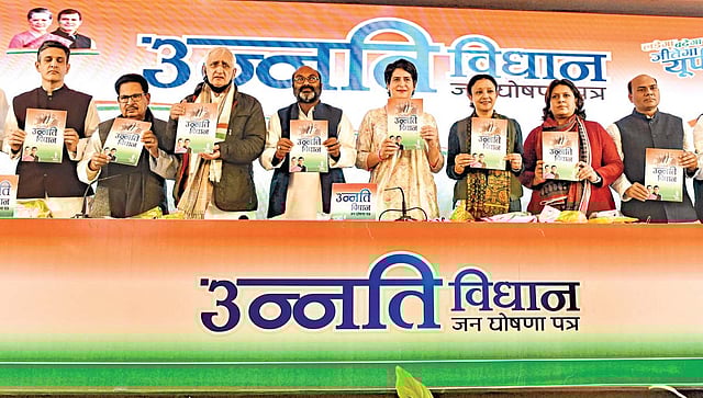 काँग्रेस सरचिटणीस प्रियांका गांधी यांनी 'उन्नती विधान' या नावाने काँग्रेसचा जाहीरनामा बुधवारी घोषित केला. यामध्ये शेतकर्यांना कर्जमाफीसह महिलांना नोकर्यांमध्ये 40 टक्के आरक्षणाची घोषणा केली आहे.