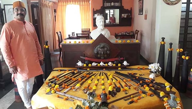 शुक्रवारी विजयदशमीच्या दिवशी रघुजीराजे आंग्रे यांच्या येथील हिराकाेट किल्ल्या शेजारील घेरीया या निवासस्थानी सरखेल कानाेजी राजे आंग्रे यांच्यापासूनच्या प्रत्यक्ष वापरातील आठ पिढ्यांच्या शस्त्रांची प्राचिन परंपरेनुसार विधीवत पूजा करण्यात आली. त्या निमित्ताने रघूजीराजे आंग्रे बाेलत हाेते. शस्त्रांची माहिती देताना रघूजी राजे आग्रे पूढे म्हणाले की, शस्त्र चालवायला मनगटात शक्ती येण्याची गजर असते, आणि त्याकरिता मनात ताकद आणि मनावरचे नियंत्रण अत्यंत महत्वाचे असते.
