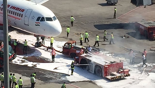 छत्रपती शिवाजी महाराज आतरराष्ट्रीय विमानतळावर प्रवाशांनी भरलेल्या विमानाला पुशबॅक करण्यासाठी आलेल्या वाहनाला, विमानाजवळच भीषण आग लागली. ६५७ क्रमांकाचे हे विमान मुंबईवरून जामनगरला निघाले होते. विमानाला रणवेवर ढकलण्यासाठी पुशबॅक वाहन विमानाला जोडण्यात येत होते. त्यावेळी अचानक विमानाजवळच या पुशबॅक वाहनाने पेट घेतला.