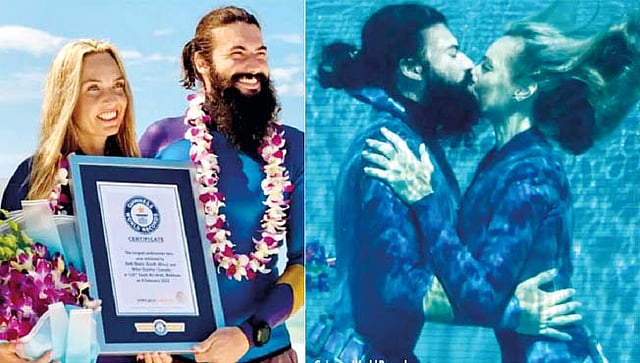माईल्स क्लाऊटियर (कॅनडा) आणि बेथ नीले (दक्षिण आफ्रिका) अशी या दोघांची नावे आहेत. त्यांच्या या रेकॉर्डची नोंद गिनिज बुकमध्ये झाली आहे. एका स्विमिंग पूलमध्ये त्यांनी 4 मिनिटे 6 सेकंद एकमेकांना किस (kiss in water) केले. यापूर्वीचा विक्रम 13 वर्षांपूर्वी इटालियन जोडप्याच्या नावावार होता. त्यांनी पाण्यात 3 मिनिटे 24 सेकंद किस केले होते. माईल्स आणि बेथ हे दोघेही डायव्हर्स आहेत. त्यांना दीड वर्षाची मुलगी आहे. तिघेही दक्षिण आफ्रिकेत राहतात.