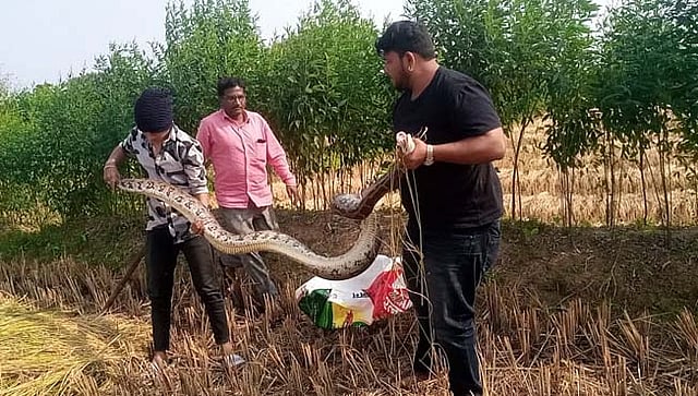 मूल तालुक्यातील चांदापूर येथे बंडू कडूकर यांच्या शेतात धान कापणी सुरू आहे. धान कापणी करताना मजूरांना भला मोठा साप असल्याचे दिसून आले. त्यांनी काम बंद करून दिलीप पाल यांना याची माहिती दिली. मूल येथील सर्पमित्र तन्मय झिरे यांना माहिती देऊन बोलविण्यात आले. सर्पमित्र तन्मय झिरे आणि वेदांत निकूरे या दोघांनी तात्काळ चांदापूर गाठून धानात लपून बसलेल्या अजगराला मोठ्या शिताफीने पकडले.
