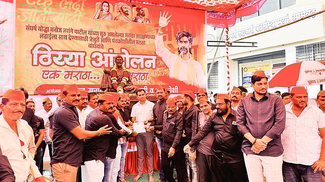 जेजुरी : पुढारी वृत्तसेवा : महाराष्ट्राचे कुलदैवत असणाऱ्या खंडोबा देवाच्या जेजुरी नगरीत मनोज जरांगे पाटील यांच्या मराठा आरक्षण आंदोलनाला पाठिंबा देण्यासाठी जेजुरी सकल मराठा समाजाच्या वतीने ठिय्या आंदोलन सुरू करण्यात आले. जेजुरी येथील छत्रपती शिवाजी महाराज चौकात सकल मराठा समाजाच्या वतीने शिवाजी महाराज यांच्या पुतळ्याला पुष्पहार अर्पण करून ठिय्या आंदोलनाला सुरुवात करण्यात आली. या आंदोलनात जागरण गोंधळ घालून आरक्षण मिळावे यासाठी खंडोबा देवाला साकडे घालण्यात आले. तसेच भजन कीर्तन कार्यक्रमाचे आयोजन करण्यात आले.