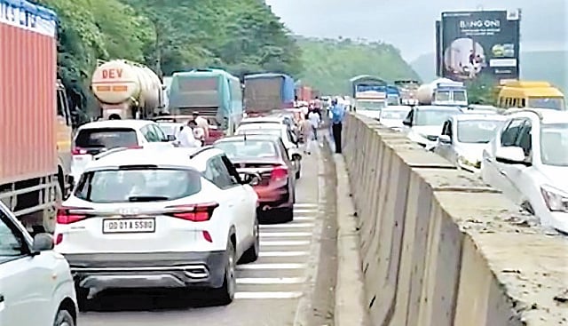 सलग सुट्या असल्यामुळे अमृतांजन पुलाजवळील खंडाळा एक्झिट (किलोमीटर 42 ते 45) दरम्यान तीन किलोमीटरच्या मार्गावर कोंडी होत आहे. या ठिकाणी झालेली कोंडी सोडविण्यासाठी आमच्याकडून ब्लॉक घेऊन नियोजन करण्यात येत आहे.