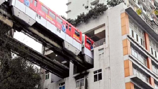 इमारतीमधून जाणारा रेल्वे ट्रॅक चीनमधील माउंटेन सिटी चंक्विंगमध्ये आहे. या शहरात बहुतांशी इमारती टोलेजंग असून तेथे जागेची कमी आहे. उंचावर रेल्वे ट्रॅक तयार करताना देखील 19 वा मजला आड आला आणि यावर मार्ग काढण्यासाठी तेथील अभियंत्यांनी चक्क बिल्डिंगमधून ट्रॅक निर्माण करण्याचा फंडा काढला अन् ते यात यशस्वी देखील झाले.