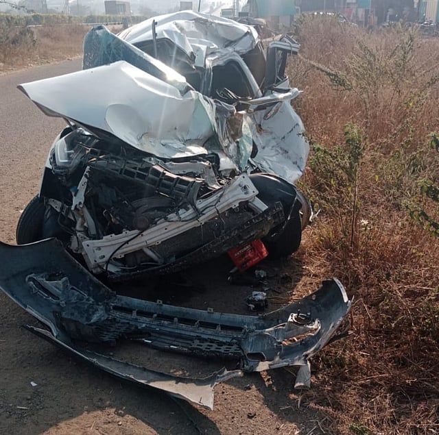 पुण्याकडून भालकी (जि. बिदर)कडे सुट्टीसाठी स्विफ्ट (एमएच ०६ बीयु ४०८९) गाडीने भरधाव वेगात जात असताना मळद हद्दीत अचानक स्विफ्टचा टायर फुटला. त्यामुळे स्विफ्ट दुभाजक ओलांडून विरोधी बाजूच्या सोलापूर लेनवरील कंटेनरला (एमएच ४३ वाय ४६६९) जोरात धडकली. कंटेनरच्या धडकेने स्विफ्टच्या पुढील व डाव्या बाजूचा पूर्णपणे चक्काचूर झाला. या घटनेत स्विफ्टमधील शिल्पा तुलशी गिरी यांचा घटनास्थळीच तर गाडीचालक त्यांचा भाऊ साधव गौरव गिरी यांचा रुग्णालयात उपचारादरम्यान मृत्यू झाला. या घटनेचा तपास दौंड पोलिस करीत आहेत.