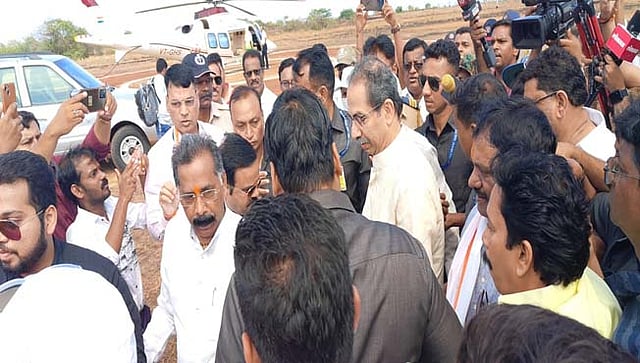 राजापूर ; पुढारी वृत्तसेवा बारसूच्या आंदोलकांना भेटण्यासाठी आलेले माजी मुख्यमंत्री उद्धव ठाकरे यांच्या हेलिकॉप्टरचे कोंबे (राजापूर) येथे लॅडींग झाले. त्यावेळी खासदार विनायक राऊत आमदार वैभव नाईक यांच्यासह सेनेच्या नेत्यांनी त्यांचे जोरदार स्वागत केले. त्यावेळी ठाकरे गटाकडून केलेल्या जोरदार घोषणांनी परीसर दणाणुन गेला.