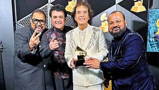 लॉसएंजेलिस, वृत्तसंस्था : संगीतविश्वातील मानाच्या 66 व्या ग्रॅमी पुरस्कार 2024 सोहळ्यात भारताचा डंका वाजला. तबला नवाझ उस्ताद झाकीर हुसैन, गायक शंकर महादेवन, तालवादक व्ही. सेल्वगणेश, व्हायोलिनवादक गणेश राजगोपालन यांना 'धिस मोमेंट' या अल्बमसाठी 'द बेस्ट ग्लोबल अल्बम'चा पुरस्कार देण्यात आला. झाकीर हुसैन यांनी 3, तर बासरीवादक राकेश चौरसिया यांनी 2 ग्रॅमी अॅवॉर्ड पटकावले!