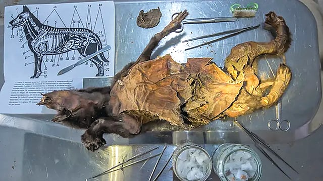 स्टॉकहोम : सैबेरियातील गोठलेल्या जमिनीत (पर्माफ्रॉस्ट) सापडलेल्या एका प्राचीन लांडग्याच्या पिल्लाच्या पोटातून शास्त्रज्ञांनी 14,400 वर्षांपूर्वीच्या ‘वूली र्हायनो’च्या म्हणजेच केसाळ गेंड्याच्या मांसाचा तुकडा शोधून काढला आहे. या अवशेषांच्या जनुकीय विश्लेषणातून असे समोर आले आहे की, हवामान बदलामुळे या प्रजातीचा अत्यंत वेगाने नाश झाला असावा.