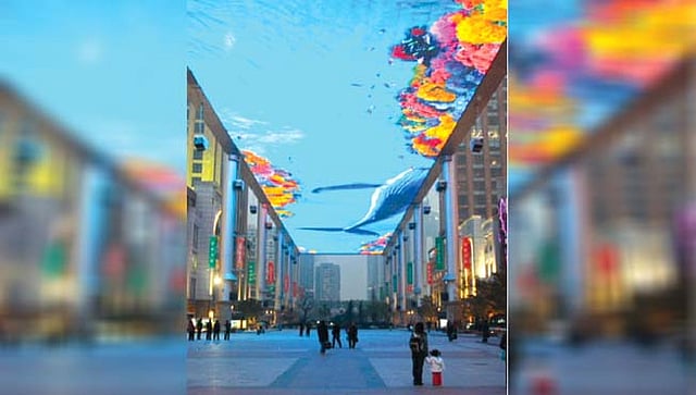 बीजिंग : महाभारतातील मयसभेची वर्णने थक्क करणारीच आहेत. मय नावाच्या स्थापत्यविशारदाने बांधलेल्या या सभागृहात जळावर स्थळाचे आणि स्थळावर जळाचा बेमालूम आभास निर्माण केला होता. नव्या तंत्रज्ञानानेही असे अनेक आभास निर्माण केलेले आहेत. त्याची प्रचिती चीनची राजधानी बीजिंगमधील एका मॉलच्या छतावर पाहायला मिळते. या मॉलमध्ये खरेदीसाठी आलेले लोक वर नजर करून पाहतात आणि त्यांना दिसले वर अनेक लहान-मोठे मासे आपल्या डोक्यावर पोहत चालले आहेत! हे 'व्हर्च्युअल अॅक्वॅरियम' अनेकांना थक्क करणारे आहे.