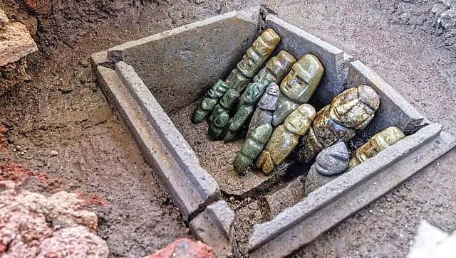 मेक्सिको सिटी : मेक्सिकोमध्ये इ.स. 1300 ते 1521 या काळात अॅझटेक संस्कृती नांदत होती. आता मेक्सिको सिटीमधील पुरातत्त्व संशोधकांनी अॅझटेक संस्कृतीच्या काळातील अनेक छोट्या दगडी मूर्ती उत्खननात शोधून काढल्या आहेत. एका दगडी पेटीत या मूर्ती ठेवलेल्या आढळल्या. या पंधरा मूर्तींपैकी चौदा पुरुषांच्या असून एक स्त्रीची आहे. ही स्त्री मूर्ती पंधरा मूर्तींपैकी सर्वात लहान आकाराची आहे. पूजाविधीसाठी या मूर्तींचा वापर केला जात असावा असे संशोधकांना वाटते.