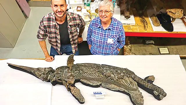लंडन : बिटनच्या ज्युरासिक कोस्टवर सापडलेला जवळजवळ संपूर्ण जीवाश्म सांगाडा एका नवीन, प्राचीन सागरी सरिसृप प्राण्याच्या प्रजातीचे प्रतिनिधित्व करतो. हा प्राणी डायनासोरच्या काळात पृथ्वीवर अस्तित्वात होता. या इक्थिओसॉरला (Ichthyosaur) ‘झीफोड्रेकॉन गोल्डनकॅप्सिस’ (Xiphodracon goldencapsis) असे नाव देण्यात आले आहे. पेपर्स इन पॅलेऑन्टोलॉजी नावाच्या जर्नलमध्ये शुक्रवारी (ऑक्टोबर 10) प्रकाशित झालेल्या एका अभ्यासानुसार, हा प्राणी जिवंत असताना अंदाजे 10 फूट (3 मीटर) लांब असावा. या प्राण्याच्या डोळ्यांची खोबणी मोठी होती आणि तलवारीच्या आकाराचे लांब, निमुळते तोंड होते.