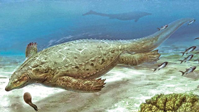 बीजिंग : तब्बल 25 कोटी वर्षांपूर्वी सध्याच्या दक्षिण चीनच्या परिसरात हाडांचे चिलखती आवरण असलेला सागरी सरडा वावरत होता. या प्राचीन सरीसृपाचे जीवाश्म आता शोधण्यात आले आहे. समुद्रातील उथळ पाण्यात असे सरडे होते. या जीवाश्माच्या अभ्यासामुळे आता असे चिलखती आवरण असलेल्या सागरी सरीसृपांचा वंशवृक्ष नव्याने तयार करण्यास चालना मिळेल. या सागरी सरड्यांचा आकार एखाद्या माणसाइतका मोठा होता.