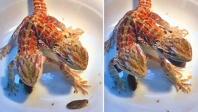 अर्थातच दोघांची शेपटी एकच आहे. मात्र, पुढील दोन पाय वेगवेगळे आहेत व मागील दोन पाय 'कॉमन' आहेत. त्यांना सांभाळणार्या व्यक्तीने त्यांचा हा व्हिडीओ बनवला आहे. त्याने या सरड्यांना प्लेटमध्ये बसवून त्यामध्ये काही जिवंत किडे सोडले आहेत. हे सरडे आपापल्या तोंडांनी हे किडे पकडून त्यांचा चट्टामट्टा करीत असताना व्हिडीओत दिसते. इन्स्टाग्रामवर हा व्हिडीओ शेअर करण्यात आला आहे. ही 'पॉलीसेफली' नावाची स्थिती आहे असे त्याच्या कॅप्शनमध्ये म्हटले आहे. हा व्हिडीओ अर्थातच व्हायरल झाला असून अनेक लोक त्यावर वेगवेगळ्या प्रतिक्रिया व्यक्त करीत आहेत.