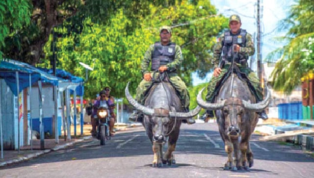ब्राझिलिया : ब्राझीलमधील उत्तर भागात जिथे अमेझॉन नदी अटलांटिक महासागराला मिळते, तिथे 'माराजो' नावाचे एक बेट आहे. स्वित्झर्लंडच्या आकाराचे हे बेट अतिशय सुंदर व जैवविविधतेने नटलेले आहे. मात्र तेथील एक विचित्र पद्धत लोकांचे लक्ष वेधून घेण्यास अधिक कारणीभूत ठरते. ही पद्धत पोलिसांच्या गस्त घालण्याची आहे. तिथे पोलिस चक्क रेड्यावर बसून गस्त घालतात!