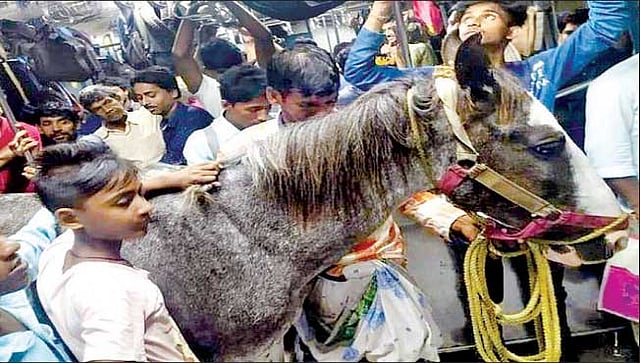 कोलकाता : पश्चिम बंगालमध्ये लोकल रेल्वेत घोड्याने प्रवास केल्याचे प्रकरण सध्या गाजते आहे. याचे छायाचित्रही समाजमाध्यमांतून तुफान व्हायरल होत आहे. रेल्वे प्रशासनाने या प्रकरणी चौकशीचे आदेश जारी केले असून, दक्षिण 24 परगणा जिल्ह्यातील बरुईपूर येथे आयोजित एका शर्यतीत सहभागी होण्यासाठी या घोड्याला रेल्वेतून नेण्यात आल्याचे सांगण्यात येते.