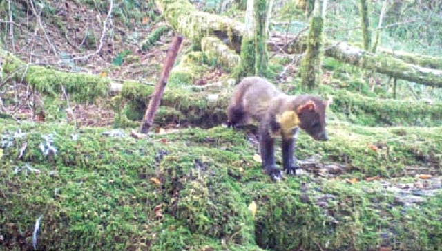 लंडन : 'पाईन मार्टन्स' ही सस्तन प्राण्यांची युरोपमध्ये आढळणारी एक दुर्मीळ प्रजाती आहे. नुकतेच ब्रिटनमध्ये या दुर्मीळ प्राण्याची झलक दिसून आली. ही झलक झाडांवर लावलेल्या कॅमेर्यांनी टिपली आहे. श्रॉपशायरमधील जंगलातील झाडांवर हे कॅमेरे लावले होते. त्यांनी या प्राण्याची छबी टिपून घेतली आहे.