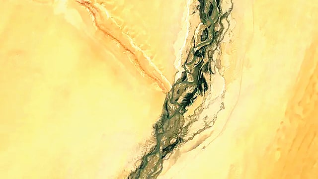 बीजिंग : चीनमधील शिनजियांग प्रांतात असलेल्या ताकलामाकन वाळवंटाच्या मध्यभागी एक महाकाय ‘ध’ आकाराची आकृती उपग्रहाद्वारे टिपण्यात आली आहे. हा वैशिष्ट्यपूर्ण आकार नैसर्गिक डोंगराची रांग आणि मौल्यवान रत्नांनी समृद्ध असलेल्या नदीच्या संगमातून तयार झाला असून, येथे आठव्या शतकातील एक ऐतिहासिक किल्लादेखील स्थित आहे.