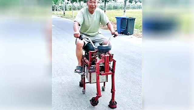 व्हायरल होत असलेल्या या व्हिडीओत एक व्यक्ती छोट्याशा गाडीवर बसल्याचे दिसून येते आहे. आता ही गाडी प्रथमदर्शनी लहान मुलांच्या खेळण्यासारखे भासेल. पण, व्यवस्थित पाहिल्यानंतर कळते की, हे खेळणे नसून ती सहाचाकी गाडी आहे. ही गाडी एखाद्या घोडेगाडीसारखीही आहे. चार पायासारखे दिसणारे चार रॉड समोरील बाजूने दिसतात आणि मधोमध दोन टायरही फिट करण्यात आले आहेत. याशिवाय, बसण्यासाठी सीटही बसवली गेली आहे.