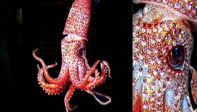 वॉशिंग्टन : जगाच्या पाठीवर अनेक सुंदर जीव आढळतात. त्यामध्ये 'स्ट्रॉबेरी स्क्वीड' या सागरी जलचराचा समावेश होतो. त्याला 'एच. हेटरोस्पिस' असे वैज्ञानिक नाव आहे. हा स्क्वीड अतिशय सुंदर असतो. त्याचे शरीर जणू काही हिर्यांनी मढवले आहे की काय असे वाटते!
