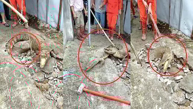 आपण मगरी पाण्यात पाहतो. परंतु, सध्याच्या व्हायरल व्हिडीओमध्ये दिसत असलेल्या मगरी या जमिनीतून आल्या आहेत. हा व्हिडीओ अनेकांचे लक्ष वेधून घेत आहे. लोकांना अजून शंका आहे की, त्या मगरी जमिनीच्या खाली कशा गेल्या. ज्यावेळी एका मगरीच्या तोंडाला दोर बांधला, त्यानंतर त्या मगरीच्या मागून अजून एक मगर तिथून बाहेर आली. ज्यावेळी दुसरी मगर पटकन बाहेर येते त्यावेळी तिथे असलेल्या लोकांमध्ये मोठी खळबळ माजली. हा व्हिडीओ ट्विटरवर शेअर करण्यात आला आहे.