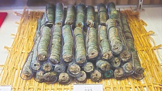 एका कारखान्याच्या इमारतीसाठी खोदकाम सुरू असताना ही नाणी आढळली. त्यानंतर पुरातत्व संशोधकांनी शास्त्रीय पद्धतीने उत्खनन करून ती बाहेर काढली. त्यापैकी केवळी 334 नाण्यांचा आतापर्यंत अभ्यास करण्यात आला आहे. त्यापैकी सर्वात जुने नाणे हे मुळचे चीनचे आहे. ते इसवी सनपूर्व 175 मधील आहे. सर्वात आधुनिक नाणे हे इसवी सन 1265 मधील आहे. जपानच्या 'द असाही शिम्बुन' या वृत्तपत्राने याबाबतचे वृत्त दिले आहे. ही नाणी 1060 गुंडाळ्यांमध्ये आहेत.