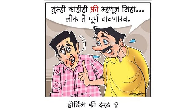 म्हणजे जाहिरात क्षेत्राने आता चक्क लोकांचे प्राण घ्यायला पण सुरुवात केली आहे. सातत्याने फोन करून, वर्तमानपत्रांमध्ये पोम्प्लेट टाकून, टीव्हीवर जाहिराती टाकून यांचे पोट भरले नाही म्हणून मग लोकांचा जीव घेणे सुरू झाले आहे. कोणतेही मोठे होर्डिंग बघ, विशेषतः ते एखाद्या उत्पादनाचे असेल, तर सर्वात वर फ्री लिहिलेले असते. फ्री, म्हणजे फुकट मिळणार्या गोष्टीचे भारतीय लोकांना एवढे आकर्षण आहे की, तुम्ही काहीही फ्री म्हणून लिहा लोक ते पूर्ण वाचतीलच. एकावर एक फ्री, तीन शर्टवर चार शर्ट फ्री, पाच पँटींवर 12 पँटी फ्री, म्हणजे फ्री वादाची चंगळ सर्व जाहिरातींमध्ये असतेच असते पण होर्डिंगवर पण असते. म्हणजे आता असे अवाढव्य होर्डिंग मुख्य रस्त्यांवर जागोजागी असताना आपण सामान्य नागरिकांची जबाबदारी अधिक वाढली आहे. आपण पायी चालताना किंवा वाहन चालवताना त्या गर्दीमध्ये इतर वाहनांबरोबर धडकून आपला अपघात होऊ नये, याची तर काळजी घ्यावी लागेलच; पण त्याचबरोबर पावसाळ्याच्या दिवसात एखादे झाड, एखादा खांब किंवा एखादे होर्डिंग आपल्या अंगावर कोसळणार नाही, याची काळजी घेऊन गाडी चालवावी लागेल हे नक्की. आधीच जगण्यासाठी काय कमी आटापिटा आहे का, त्यात पुन्हा ही भर. म्हणजे सामान्य माणसाने जगायचे कसे हा मोठाच प्रश्न निर्माण झाला आहे. होर्डिंग लावावी जरूर मात्र ते करत असताना सर्वसामान्यांना त्याचा फटका बसणार नाही, याची काळजी घ्यावीच लागेल.