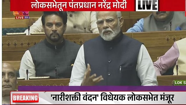 बुधवारी लोकसभेत महिला आरक्षण विधेयक ४४५ मतांनी मंजूर झाले. आता जेव्हा आपण राज्यसभेमध्ये हा विधेयकाचा शेवटचा टप्पा पार करू तेव्हा देशाच्या स्त्री शक्तीमध्ये होणारे परिवर्तन त्यांच्या चेहऱ्यावर निर्माण होणारा विश्वास ही एक अकल्पनीय आणि अभूतपूर्व शक्ती म्हणून उदयास येईल, असा विश्वासही पंतप्रधान मोदी यांनी स्पष्ट केले आहे. (Women's Reservation Bill)