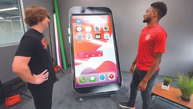 वॉशिंग्टन : अमेरिकन यूट्यूबर मॅथ्यू बीम याने जगातील सर्वात मोठा आयफोन बनवल्याचा दावा केला आहे. त्याची लांबी सात फूट आहे. विशेष म्हणजे, आकाराने इतका मोठा असूनही हा आयफोन मूळ आयफोनसारखाच काम करू शकतो, असेही त्याने म्हटले आहे.