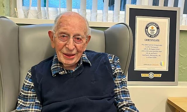 पुढारी ऑनलाईन डेस्क : जगातील सर्वात वृद्ध व्यक्ती (World's oldest man) म्हणून इंग्लंडमधील १११ वर्षीय जॉन आल्फ्रेड टिनिसवूड यांच्या नावाची नोंद गिनीज वर्ल्ड रेकॉर्डमध्ये झाली आहे. त्यांना नुकतेच गिनीज वर्ल्ड रेकॉर्डने प्रमाणपत्रही प्रदान केले आहे. त्यांनी आपल्या दीर्घायुष्याचे रहस्य सांगितले आहे.