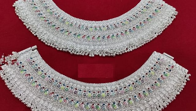 हुपरी; पुढारी वृत्तसेवा : चांदीचा दर दिवसेंदिवस गगनाला भिडले जात आहेत, त्यामुळे चांदीचे दागिणे खरेदी करणाऱ्या ग्राहकांना आपल्या इच्छाना मुरड घालावाे लागत आहे. पाय भरून पैंजण घालायची हौस असणाऱ्या युवतींना पंधरा वीस ग्रामच्या नाजूक पैंजणावर हौस भागवावी लागत आहे. अशावेळी एखादी युवती लाखाच्या किमतीचे व ते ही सव्वा किलो वजनाचे पैंजण घालत असेल तर चर्चा तर होणारच!