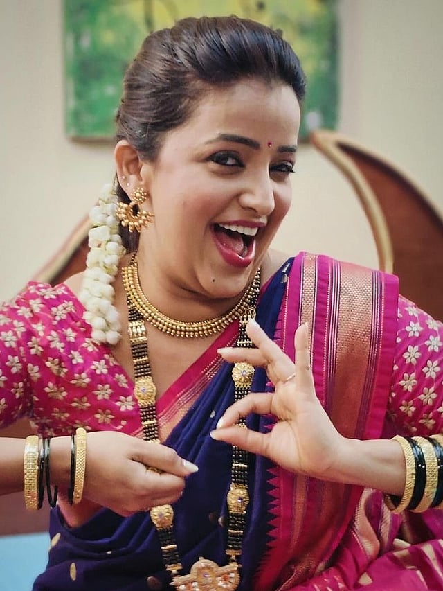 अपूर्वा नेमळेकर 'रात्रीस खेळ चाले' यातून प्रकाश झोतात आली..'रात्रीस खेळ चाले' मालिकेतील शेवंताच्या भूमिकेने तिने चाहत्यांच्या मनात घर केलं. .अपुर्वाने मोरपंखी- निळ्या साडीतील फोटो शेअर केलेत. .अपूर्वाकडे वेगवेगळ्या साड्याचे कलेक्शन खूपच आहे..मोरपंखी साडीवर तिच्या स्लिव्हलेस ब्लॉऊजने चारचाँद लावलेत. .निळ्या साडीवर केसांत गजरा, दागिने, झुमके, मेकअपने तिने लूक पूर्ण केलाय. .अपूर्वा 'प्रेमाची गोष्ट' या मालिकेत अभिनय साकारत आहे. .अभिनय सोडून श्वेता घरी राहण्याचे 'हे' आहे कारण...