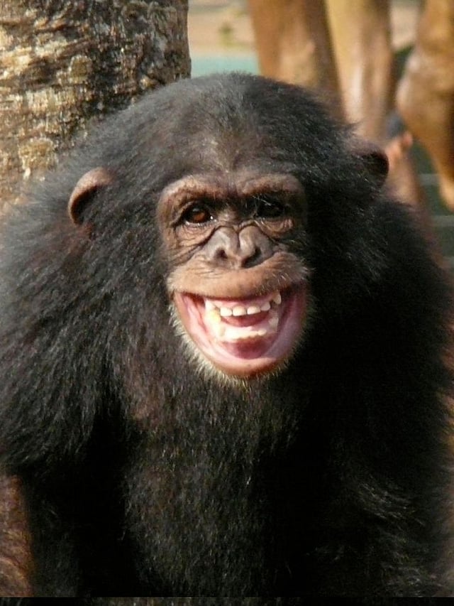 चिंपांझी खेळताना, एकमेकांना गुदगुल्या करताना किंवा मस्ती करताना, श्वास घेताना फुसफुसणारे आवाज काढतात, जे मानवी हसण्यास मिळतेजुळते असतात
