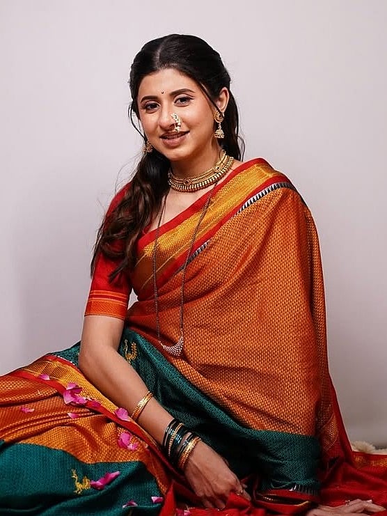 अंकिताच्या नव्या फोटोशूटमध्ये सुंदर खण पैठणी दिसतेय.मोराची नक्षी बुट्टी असलेल्या साडीत अंकिता खूप सुंदर दिसतेय .फोटोसहित व्हिडिओदेखील तिने पोस्ट केलाय.अंकिताने साधा लूक जरी केला असला तरी तिचं सौंदर्य खुललेलं आहे .पारंपरिक डिझाईन्सपैकी एक पैठणी आहे