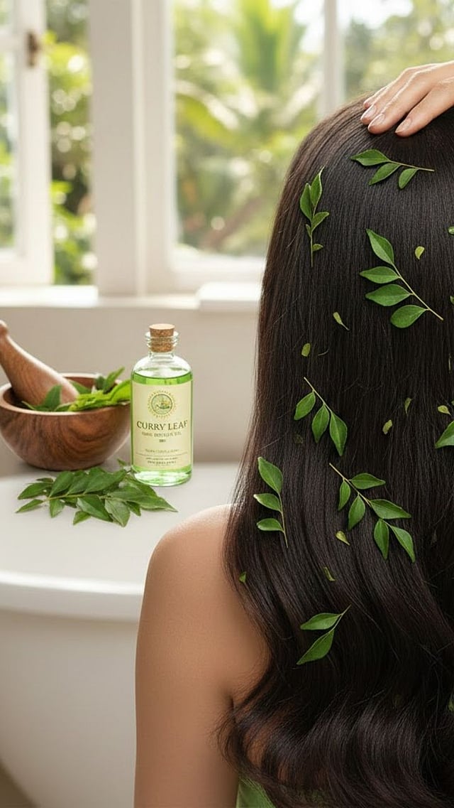 केसगळती रोखते: कढीपत्त्यामध्ये अँटी-ऑक्सिडंट्स भरपूर असतात, जे केसांच्या मुळांना मजबूत करतात आणि केस गळण्याचे प्रमाण कमी करतात.