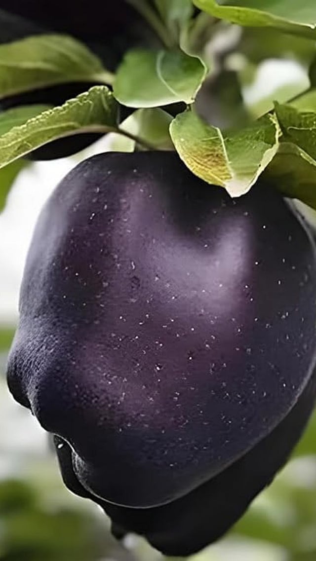 या सफरचंदाचा रंग गडद जांभळा किंवा काळपट दिसतो, ज्याला 'पर्पल डायमंड' असेही म्हटले जाते, परंतु ते पूर्णपणे जेट ब्लॅक (कोळशासारखे काळे) नसते.