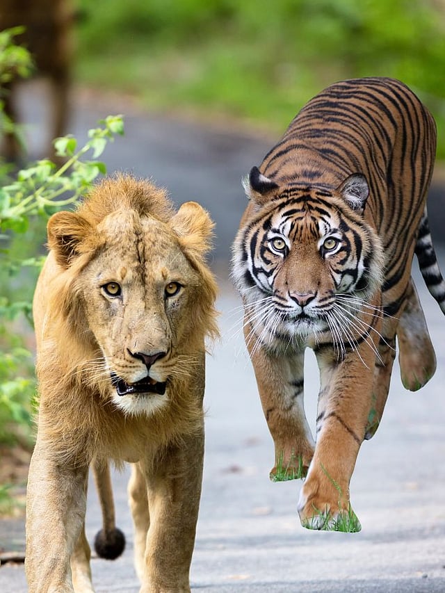 वाघ आणि सिंह एकाच प्रदेशात राहत नसले तरी एकाच देशात त्यांचे अस्तित्व हा वन्यजीव इतिहासातील दुर्मिळ प्रकार आहे