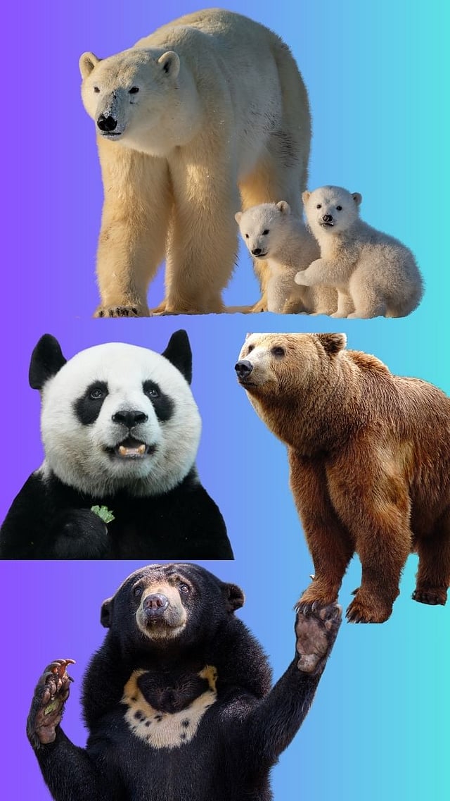 3) ध्रुवीय अस्वल (Polar Bear)हे आर्क्टिक प्रदेशात आढळणोर मोठ्या आकाराचे अस्वल आहे यातील नराचे वजन 350–700 असते. हे मांसाहारी अस्वल.संपूर्ण शरीरावर जाड पांढरी फर तसेच पोहण्यात पटाईत असते.